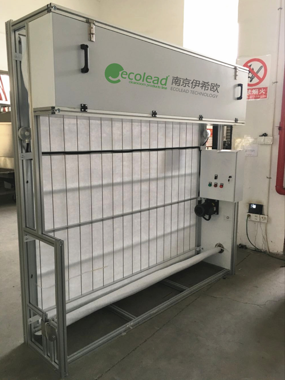配电控箱及压差仪表(含电控箱至设备的线缆),能够实现自动根据压力差自动更换滤棉。PLC控制配合时间压差控制确保高效率的更换周期,降低成本。控制系统可分为自动模式和手动模式。选择自动模式下,无需人员到设备边就可以自动卷下滤料。