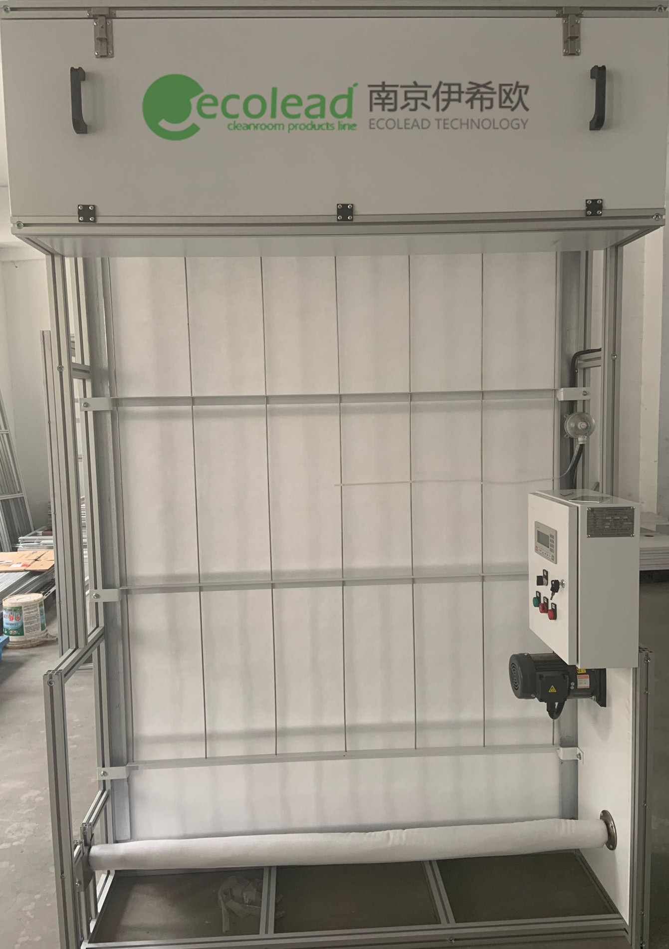 自动卷绕式过滤器框架材质:优质砂面氧化铝合金,箱体材质:1.0mmt碳钢喷塑,控制系统:PLC自动/手动控制更换滤料。滤棉效率:G3,电机:防爆BT4专用电机0.55kw,控制箱防爆型,外移户外壁挂安装,配套安装固定件。